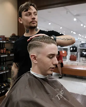 We carry out the service you’ve chosen — whether it’s a men’s haircut, fade, beard trim or razor shave —